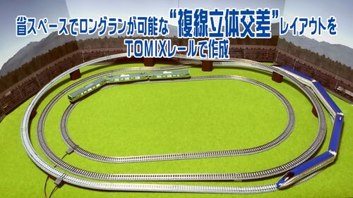 先輩方のレイアウトを参考にしようと、「卓上 お座敷レイアウト」をググって調べていたところ、複線間隔で高架を設けて一部分に特殊レールを挟み、交差させて単線でロングランを実現出来ると言う狭い我が家には夢のようなレイアウトをホビーセンターカトー東…